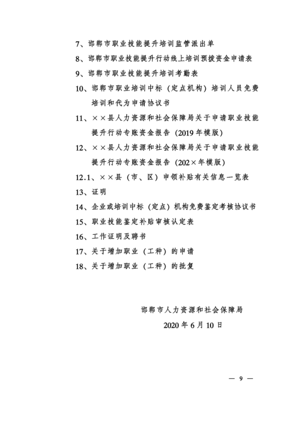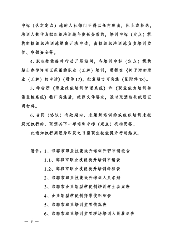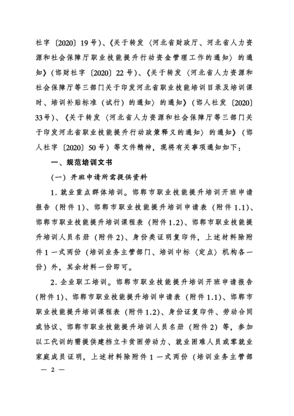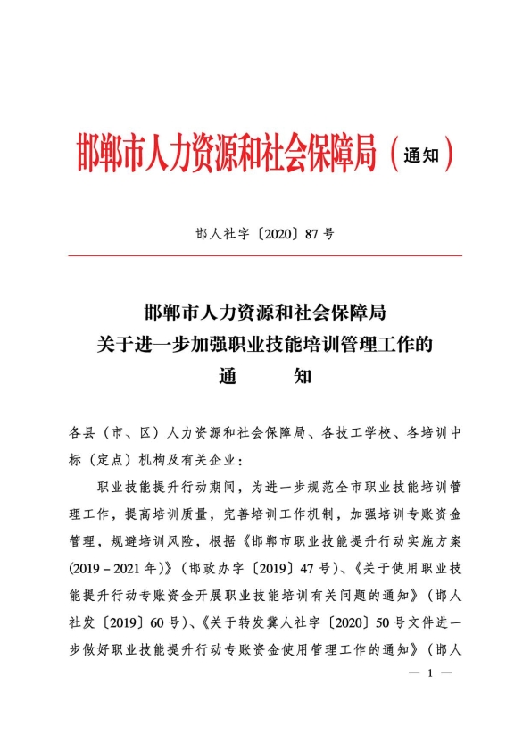 邯人社字202087号关于进一步加强职业技能培训管理工作的通知